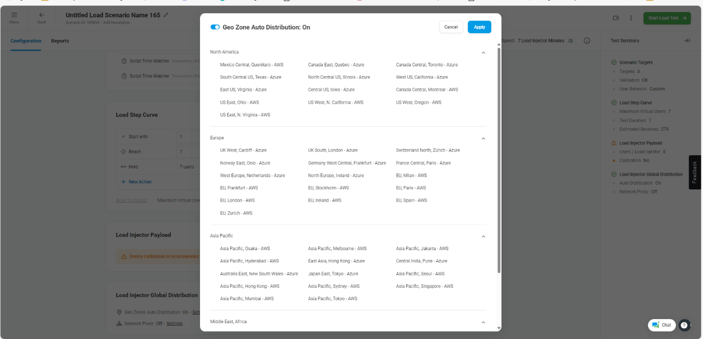 True global distribution: LoadView allows you to simulate traffic from over 40 geographically diverse cloud-based locations worldwide. This helps ensure that applications deliver consistent performance across different regions. For Example If you need to know how your app performs from Singapore, London, and Sao Paulo, LoadView can do it with a click.